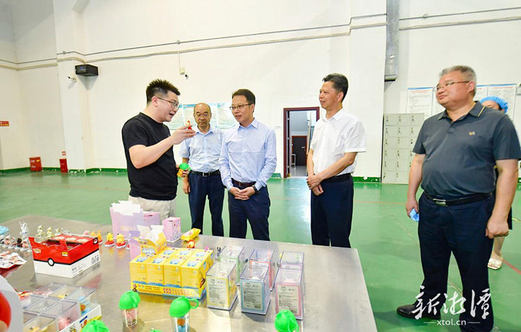 胡賀波在湖南桑尼森迪玩具制造有限公司調研企業由出口轉內外貿一體化發展情況和上市籌備情況。(方陽 攝)